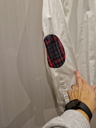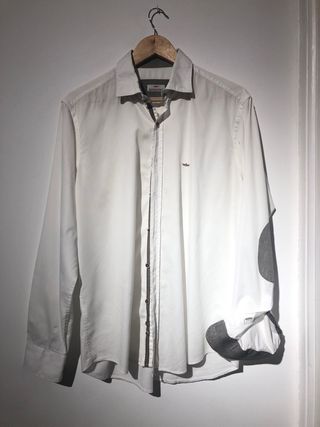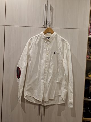 Estupenda camisa blanca con coderas, interior cuello, puños a contraste
