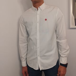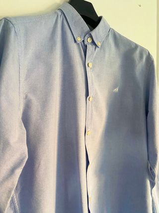 Camisa de manga larga con un diseño clásico, de algodón, en muy buen estado. Coderas de color azul claro. Cuello con botones. Logo de la marca bordado en el pecho. Entrega en metro Las Tablas L10 o Plaza de Castilla. Envío a toda España con Wallapop envíos.