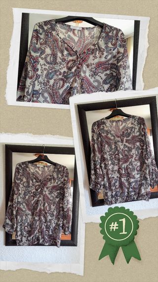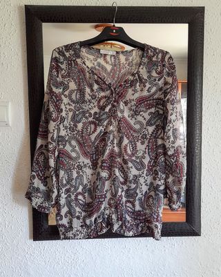 Blusa de la marca Promod, talla M o 38 en suave gasa estampada. Fondo beige con colorido diseño multicolor.Cuello en pico con botones,manga tres cuartos o codera,detalle de pliegues en el delantero,mangas,hombros y bajo con elástico. También envío. Blusa.Blusa estampada.Blusa manga tres cuartos.Blusa verano. Blusa primavera.Camiseta.Blusa entretiempo.Camiseta manga 3/4. Blusa Promod estampada.Blusa M. Blusas M.Blusas estampadas M. Camisa.Camisa gasa mujer. Camisa estampada gasa mujer.