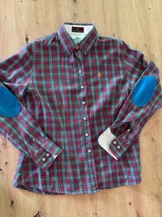 Camisa de cuadros con un diseño clásico y moderno. - Cuello camisero. - Puños con botones. - Parches en los codos / coderas en azul. - Algodón 100% Más prendas de vestir, abrigos, traje chaqueta, pantalón, jerséis, sueters, blusas, camisetas, trajes y demás productos vintage / retro en mi perfil.