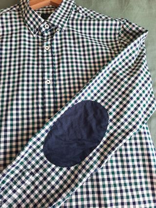 camisa CUADROS hombre Massimo Dutti XL con coderas de ante marrones