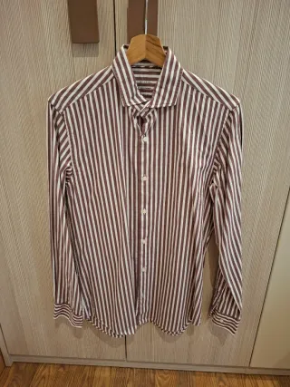 Camisa de manga larga con un diseño de rayas verticales. Sólo se ha utilizado una vez. Se vende por cambio de talla. - Cuello clásico. - Cierre de botones. - Bolsillo en el pecho.