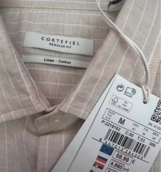 Nueva. Lino algodón beige con rayas blancas. PVP 59.99€. #cortefiel #cortefielhombre #camisalino #camisalinohombre #linenshirt