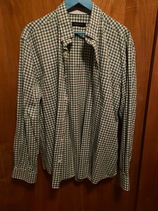 Camisa Cortefiel cuadros verde y blanco