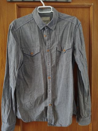 Camisa lisa gris de Cortefiel Talla L H-00091