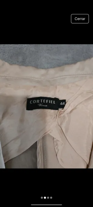 Elegante blazer de Cortefiel en color beige, perfecto para un look sofisticado. VINTED: faces13 Pone talla 44, pero es más pequeña. Medidas hombros: 41 cm Medidas largo: 62 cm - Diseño de manga corta. - Cierre de botones. - Bolsillos frontales con solapa.