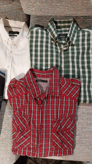 Tres camisas para hombre en talla XXL. Están en buen estado y listas para usar. Marcas Cortefiel, dustin y Emidio tucci Muy bonitas. Precio por las tres 20. Se venden por renovación de armario. Buen cuidadas, sin manchas ni nada - Todas son de manga larga.