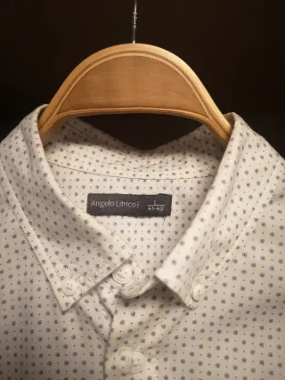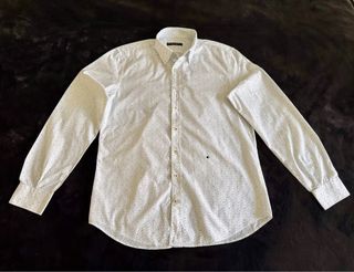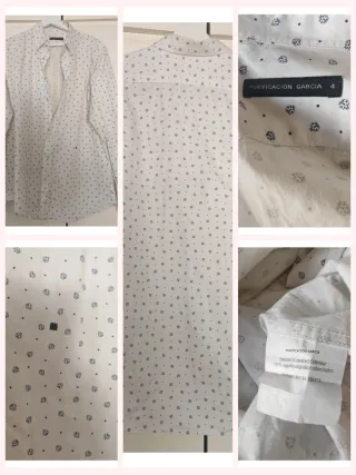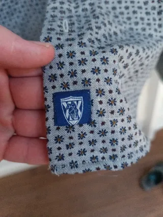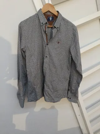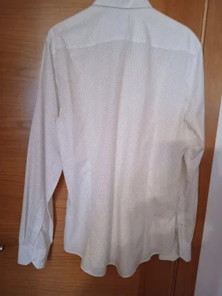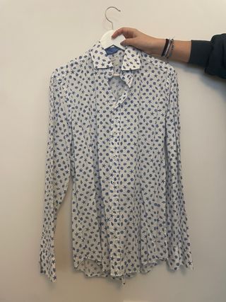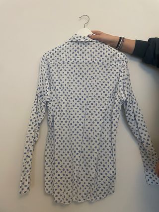 Camisa de manga larga con un discreto estampado de topos en tonos azules. - Cuello abotonado. - Cierre de botones. - Puños con botón. Usada pero en perfectas condiciones, no dudes en preguntar ☺️