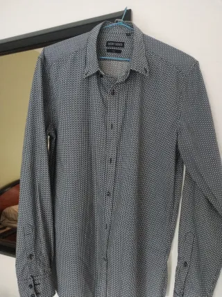 Camisa de manga larga para hombre con un estampado discreto. - Corte slim entallado. - Cuello camisero. - Cierre de botones. Talla 4 , de formula joven de El corte inglés , en muy buen estado, un solo uso