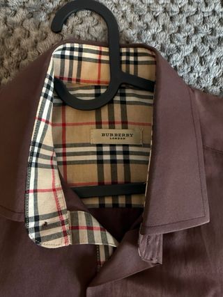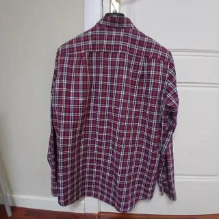 Camisa Levoratto para hombre. Manga larga, talla 44. Estampado de cuadros en tonos berenjena. Muy buen estado.