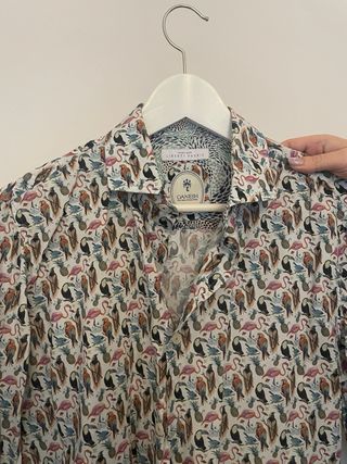 Camisa de manga larga con un llamativo estampado de pájaros en varios colores. - Diseño único y original. - Cuello clásico. - Cierre de botones.