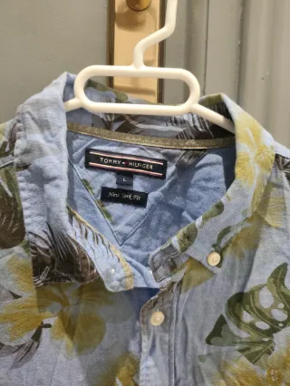 Camisa original Tommy Hilfiger para hombre. Color verde oscuro con patrón discreto en azul oscuro. Tejido 100% algodón, cómodo y de buena calidad. Estado nuevo — nunca usado. Cuello button-down con botones y logo de la marca bordado en el pecho. Talla M. 📏 Medidas aproximadas: • Hombro: 45 cm • Largo: 80 cm • Pecho (axila a axila): aprox. 52-54 cm Camisa elegante y versátil, ideal para vestir o para uso casual. Precio original de camisas similares de la marca: 80-100 €. Se vende por mudanza internacional. En mi perfil encontrarás otros artículos de calidad en venta. Recogida en mano o envío a través de Wallapop.