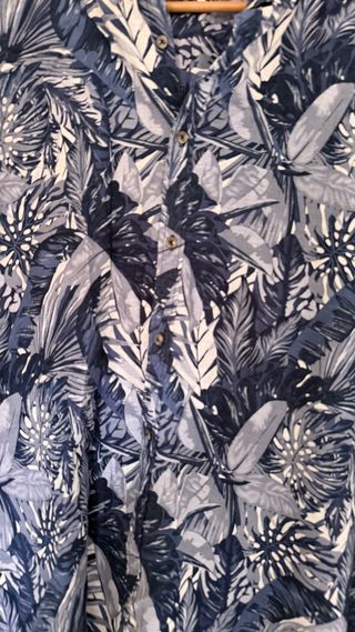Camisa de hombre con estampado tropical, ideal para un estilo casual. - Diseño de manga corta. - Cuello camisero. - Estampado de hojas verdes y blancas. - no necesita plancha - Talla XXL( tallaje pequeño parece una talla XL) _ puedo facilitar medidas * dispongo de + artículos similares en mi perfil * envío rápido y cuidado, listo para usar