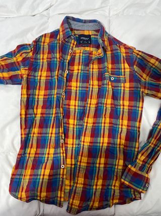 Camisa de manga larga con un llamativo estampado de cuadros. - Cuello camisero. - Cierre de botones. - Un bolsillo en el pecho.
