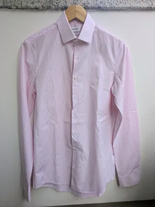 Dos camisas de vestir Calvin Klein. - Camisa de rayas finas en color rosa. - Camisa con estampado de pequeños puntos en color azul. - Corte Slim Fit. 15€ la unidad.