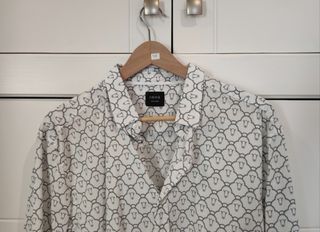 Preciosa camisa de hombre de la marca Primark. Tiene un estampado de cachemira en blanco y negro, ideal para un look moderno y elegante. - Talla S - Manga corta - Diseño único