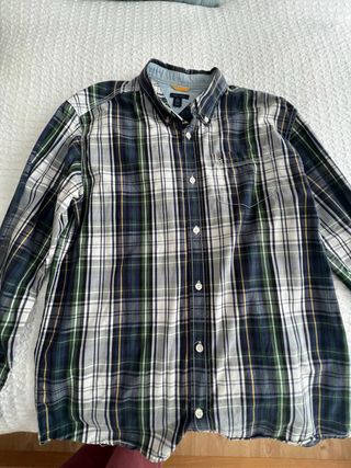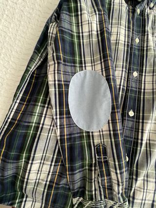 Camisa de manga larga con estampado de cuadros y detalle de coderas. Es talla XL de niño que equivale a una S de adulto