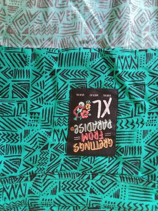 Preciosa camisa de la marca Greetings from Paradise. Es de color verde y talla XL. - Diseño único con estampados étnicos. - Manga corta. - Tejido ligero y fresco.