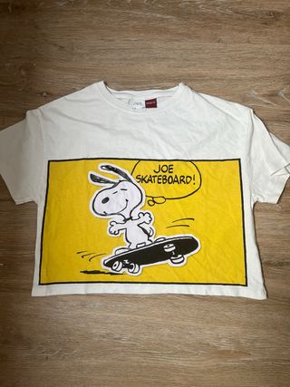 Camiseta Zara Snoopy Skateboard Blanca