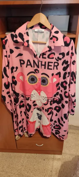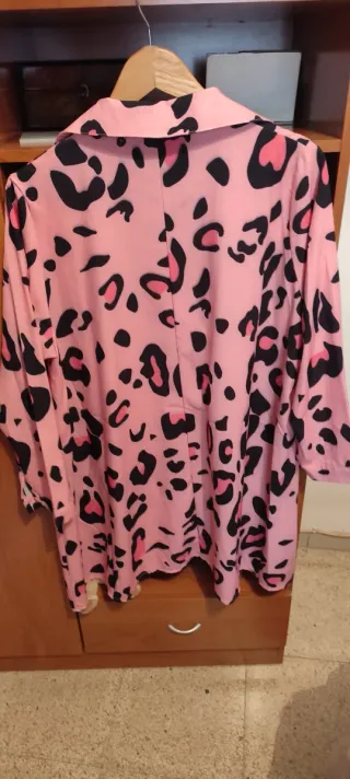 Camisa con un llamativo estampado de leopardo en tonos rosas y negros. Su diseño es moderno y versátil. - Cuello tipo solapa. - Manga larga. - Estampado de leopardo.