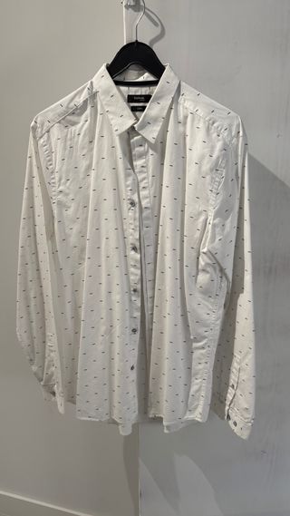 Camisa slim fit de manga larga con un discreto estampado. - Cuello clásico. - Cierre de botones. - Logo de la marca en el pecho. - Puños abotonados. Está como nueva usada en una ocasión en un evento. En la etiqueta pone talla 42 .