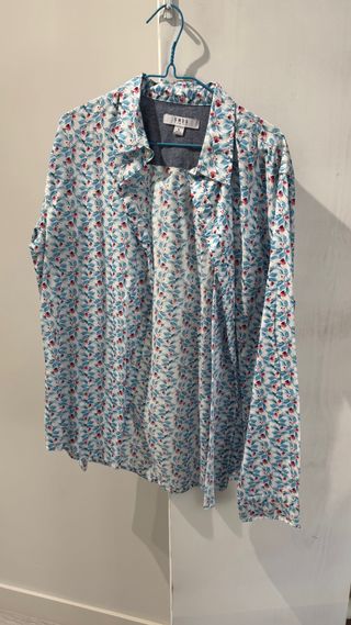 Camisa de manga larga con un diseño estampado. - Cuello camisero. - Cierre de botones. - Estampado floral en tonos azules y blancos.