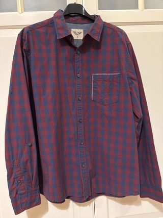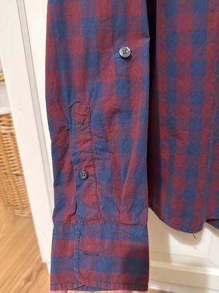 Camisa de manga larga con estampado de cuadros. Y otra azul marino. 65 cm sisa - Cuello tipo button-down. - Bolsillo en el pecho. - Cierre de botones.