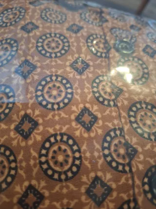 ✨ ¡Joyita Vintage auténtica de los años 70! ✨ Espectacular camisa de estilo retro con un diseño que capta perfectamente la esencia de la época. Es una prenda con mucha personalidad, ideal para amantes del estilo mid-century o coleccionistas de piezas únicas. Talla L ó 44. Perfecto estado para la época Estampado: Motivo geométrico tipo foulard muy detallado. Colores: Una combinación perfecta de marrón, azul eléctrico y toques crema. Tejido: Tacto suave y fluido, con una caída muy elegante que no se encuentra en las camisas modernas. 📏 Medidas: Hombro a hombro: 52 cm Axila a axila: 58 cm Largo de manga: 61 cm Largo total: 70 cm
