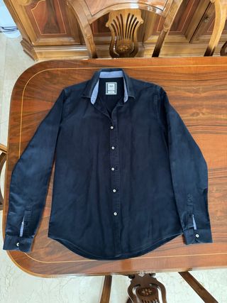 Camisa de manga larga de la marca Zara en color azul marino. Presenta un diseño clásico con cuello y botones. - Cuello con detalle de estampado. - Puños con botones.