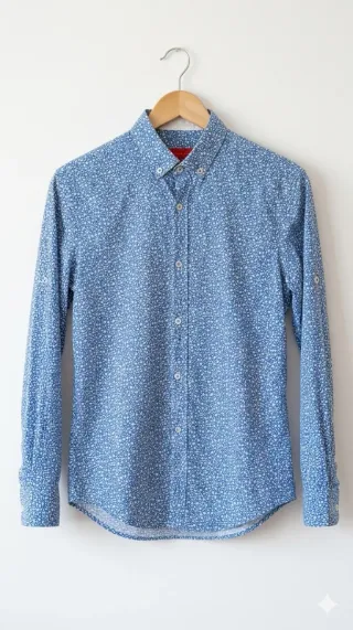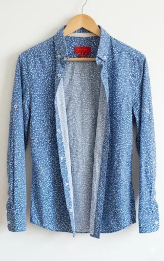 Camisa de manga larga con estampado floral de la marca Zara Man. Corte slim fit. - Cuello camisero. - Cierre de botones. - Puños abotonados. Elegante y fresca. Ideal para el día a día. Talla: S (Corte Slim Fit / Entallada). Color: Azul intenso con micro-estampado floral blanco. Estado: Muy bueno en general, excepto por un pequeño detalle. IMPORTANTE DETALLE (Precio Rebajado): La camisa presenta un pequeño enganchón (roto chiquitito) en la parte trasera, en el borde inferior del todo. Es casi imperceptible cuando se lleva puesta, especialmente si se usa por dentro del pantalón. Debido a este defecto, el precio es menor