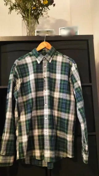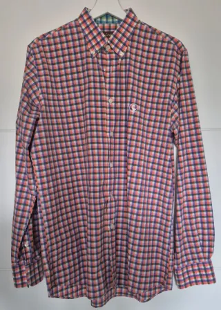 Camisa de manga larga con un clásico estampado de cuadros. Tela fina. Cuello y puños nuevos tal y como muestro Medidas 45 hombros 76 largo 65 manga