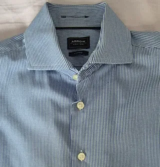 Elegante camisa de vestir Arrow con un discreto estampado de pequeños cuadraditos ideal para llevar con americana, vaqueros... - Corte slim fit. - Cuello moderno. - Cierre de botones. - Puños abotonados