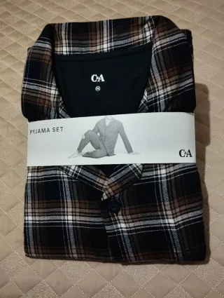 Conjunto de pijama para hombre con estampado de cuadros. - Camisa de manga larga. - Pantalón a juego. - Cuello de solapa.