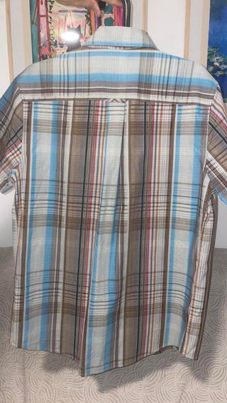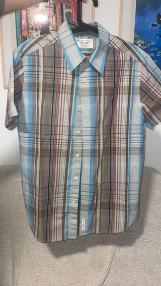 Camisa de vestir de la marca Vicky. - Cuello con botones. - Estampado de cuadros pequeños. - Logo bordado en el pecho.