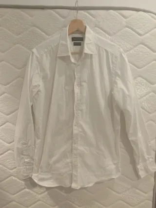 Camisa de vestir de Massimo Dutti en color blanco. Un básico elegante para cualquier ocasión. Como nueva 💯👌 - Cuello clásico. - Cierre de botones. - Puños con botón.