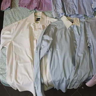 Lote de 7 camisas de vestir de la marca Massimo Dutti. - Camisa blanca de manga larga. - Camisa azul claro de manga larga. - Camisa de rayas finas azules y blancas de manga larga.....camisa azul,...detalles en fotografias.el precio es por todas