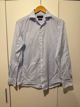 Camisa azul claro a cuadros pequeños. Massimo Dutti talla 40.