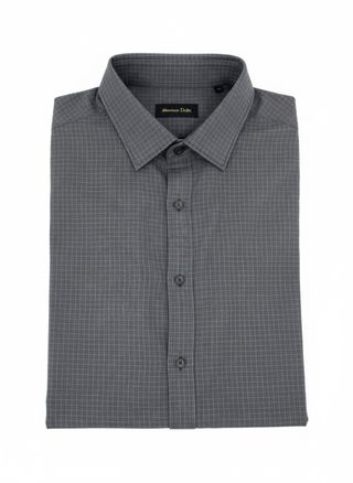 Camisa de vestir de Massimo Dutti en color gris. Presenta un tejido texturizado con pequeños puntos. - Cuello clásico. - Cierre de botones. - Manga larga.