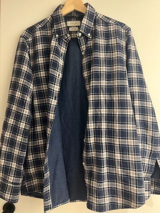 Camisa de Massimo Dutti con un diseño de cuadros clásico. - Cuadros en tonos azul y blanco. - Cuello con botones. - Tejido ligero. Tiene alguna mancha, como se puede ver en la última foto.