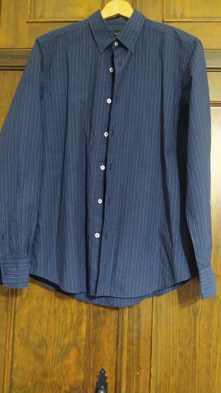Preciosa camisa de Massimo Dutti a rayas azules y blancas. Está en muy buen estado y lista para usar. - Diseño a rayas verticales. - Manga larga. - Cuello clásico. PRECIO NEGOCIABLE