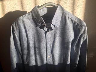 Camisa gruesa azul en perfecto estado. De Massimo Dutti talla L. Está como nueva, simplemente me va pequeña. ¿para qué gastarte el triple de dinero si ésta está como nueva? Un planchado y lista.