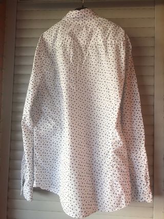 Camisa hombre manga larga. Usada en pocas ocasiones. Boda y paso de ecuador. Motivo topos,juvenil . Talla L