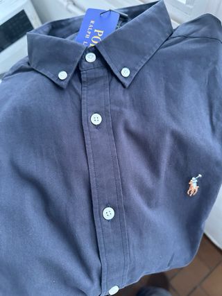 Camisa de vestir clásica de Polo Ralph Lauren. Sin estrenar porque me queda grande. Talla XL hombre, o para mujer oversize. - Logo del jinete bordado en el pecho. - Cuello con botones. - Manga larga con doble botón ajustable. Medidas: 75cm de alto 55cm de axila a axila 50cm de hombro a hombro.