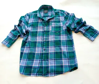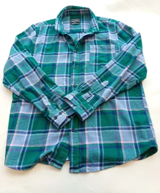 Camisa de cuadros de manga larga, ideal para un estilo casual. Camisa de manga larga de Primark en tonos verdes, azules y detalles en rosa palo. Tejido suave tipo franela ligera, ideal para entretiempo o para llevar abierta con camiseta debajo. La prenda está en muy buen estado, sin descoloridos, manchas ni bolitas. Los puños y el cuello están impecables. 📐 Medidas (en plano): Hombros: 47 cm Axila a axila: 59 cm (Corte Regular/Cómodo) Largo total: 72 cm Largo de manga: 62 cm (desde el hombro) / 50 cm (desde la axila) Ancho de puño: 13 cm - Diseño a cuadros en tonos verdes y azules. - Cuello camisero. - Cierre de botones. -