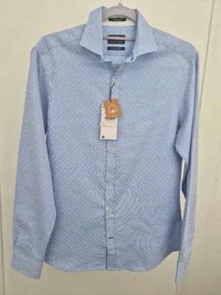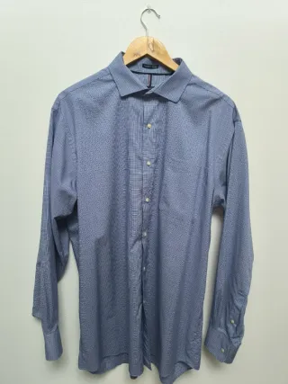 Camisa azul de Hackett. Está prácticamente nueva, sin usar casi. Cuello con botones. Bolsillo en el pecho. Puños abotonados.