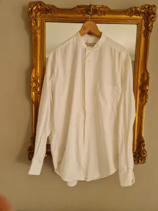 Impecable y lista para estrenar! Vendo esta camisa de la marca N&B Design For Men en color blanco óptico. Es una prenda con un diseño muy limpio y elegante, ideal para quienes buscan un estilo sofisticado pero relajado. Estado: Nueva, sin ningún uso (impecable, sin manchas ni roces). Cuello: Estilo Grandad / Mao (cuello de banda), tendencia absoluta para eventos y verano. Tejido: Algodón con textura (efecto lino), muy transpirable y con una caída excelente. Detalles: Bolsillo en el pecho, botones a tono y corte regular fit que garantiza comodidad. cuellomao #bodas #ibiza #lino #minimalist #estrenar.
