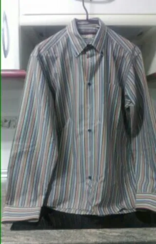Camisa de manga larga con un diseño de rayas verticales en varios colores. Presenta cuello clásico y cierre de botones. - Diseño de rayas verticales. - Cuello clásico. - Cierre de botones. Talla 3, medida de cuello 42cm, ancho por las sisas 58cm, por medidas corresponde a una talla L, está muy nueva, el color real se ve mejor en la segunda foto, mira mi perfil tengo un montón de cosas interesantes