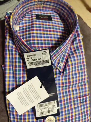 Camisa de la marca Paul & Shark, con un diseño a cuadros vibrante y auténtico. Perfecta para un look casual y elegante. - Talla 8 (equivalente a 4XL o 52/62). - Etiqueta original y sin usar. - Cierre de botones. - Cuello clásico.
