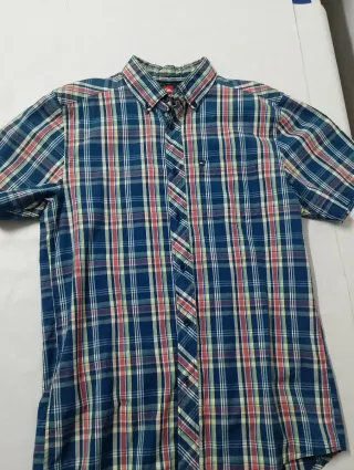 Camisa de tela fina para hombre con un diseño de cuadros. - Manga larga. - Cuello con botones. - Puños con botones. - Como nueva. - Talla M. Las ventas en persona o envíos. Los envíos se debe pagar antes a través de la app. Posteriormente se realiza el envío. Importe exacto 5 euros. Las ventas en persona se paga en ese momento en efectivo. No acepto devolución. No bajo importe. No acepto bizum ni contrareembolso.