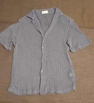 Elegante camisa de manga corta de punto. Marca Zara Men para hombre. Talla M. Color gris azul. Nueva, sin uso. * Más en mi perfil. - Tejido de punto calado. - Cuello camisero. - Cierre de botones.